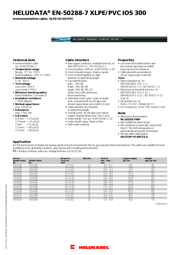 11012380 Helukabel 11012380 Przewód instrumentalny HELUDATA® EN50288-7 IOS 300 4 x 2...