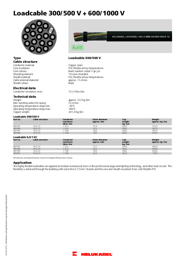 400145 Helukabel 400145 Przewód wielordzeniowy 14 G 2.5 mm² czarny 500 m