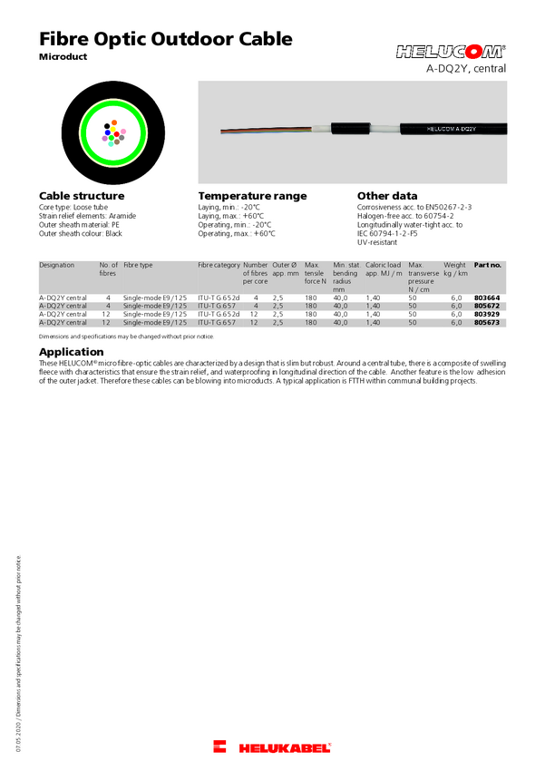 805672-100 Światłowód Helukabel A-DQ2Y 4E9/125 Micro G657.A 805672-100, 2.50 mm, 1...