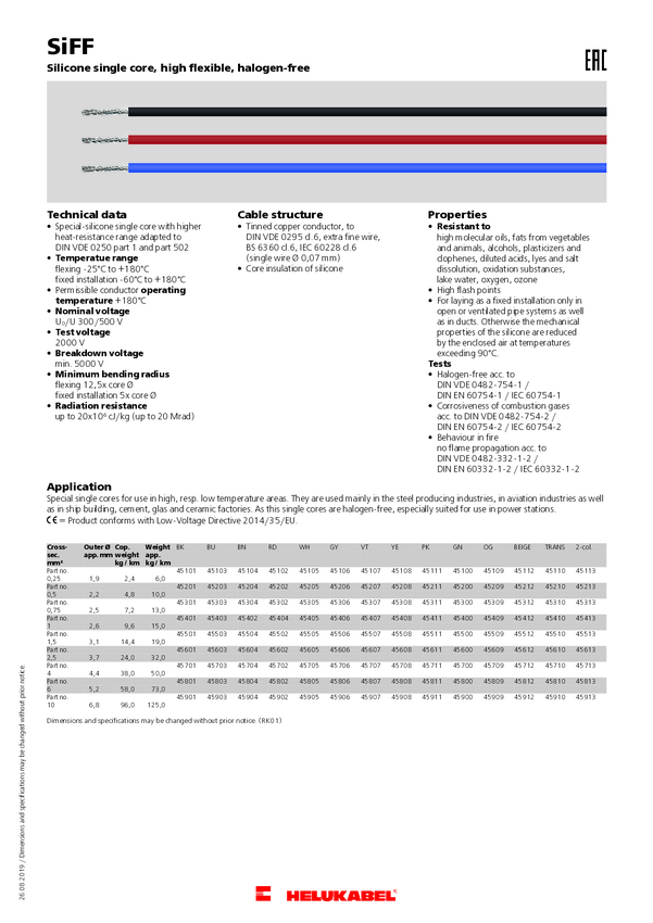 45101-100 Kabel odporny na wysokie temperatury Helukabel SIFF 45101-100, 1 x 0.25 mm²...