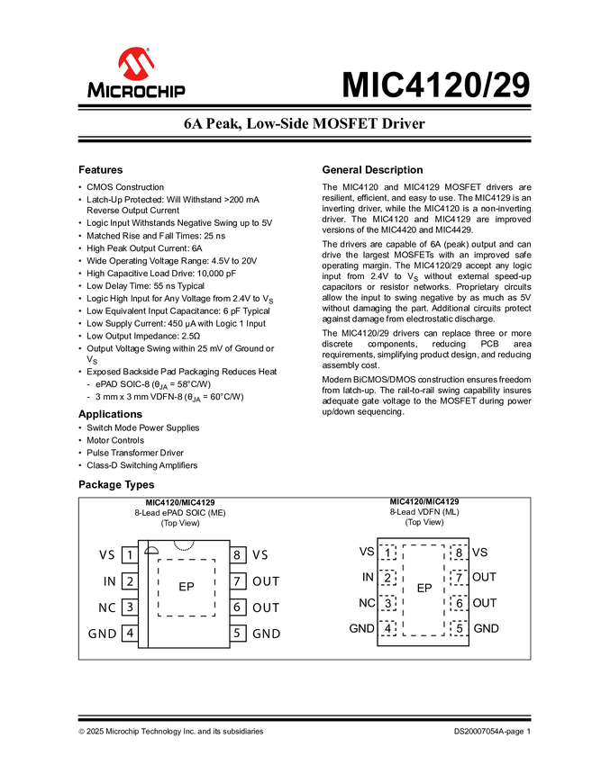 MIC4129 MIC4120/29 - 6A Peak, Low-Side MOSFET Drivers