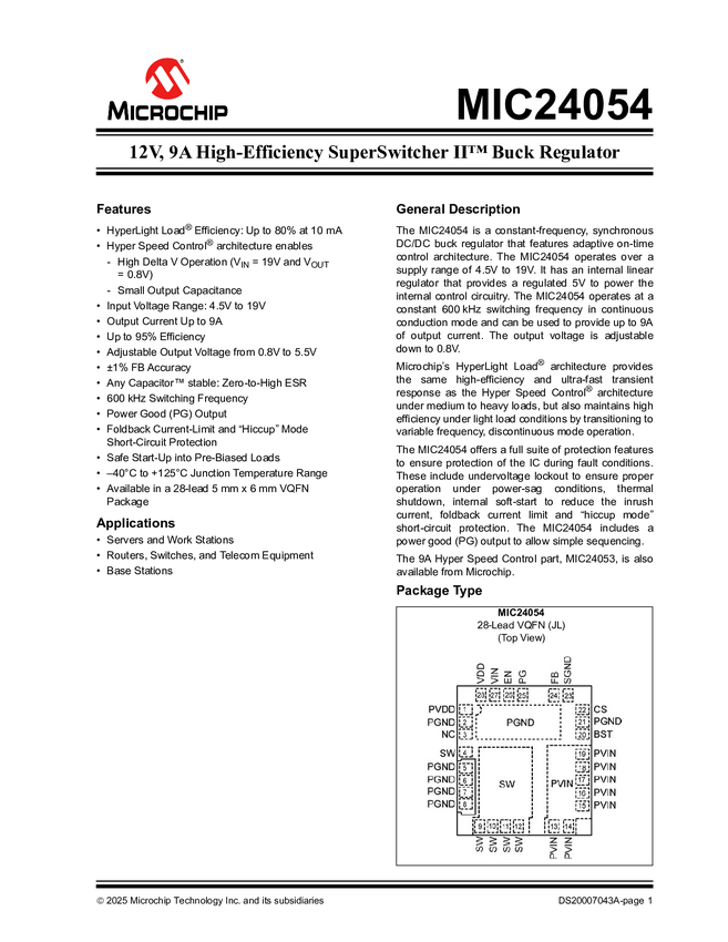 MIC24054 - 12V, 9A High-Efficiency SuperSwitcher II™ Buck Regulator