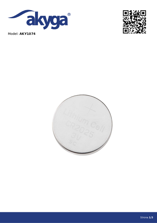 AKY1074 Bateria; litowa; CR2025; 3V; 150mAh; fi 20x2,5mm; AKY1074; AKYGA; 2025; CE