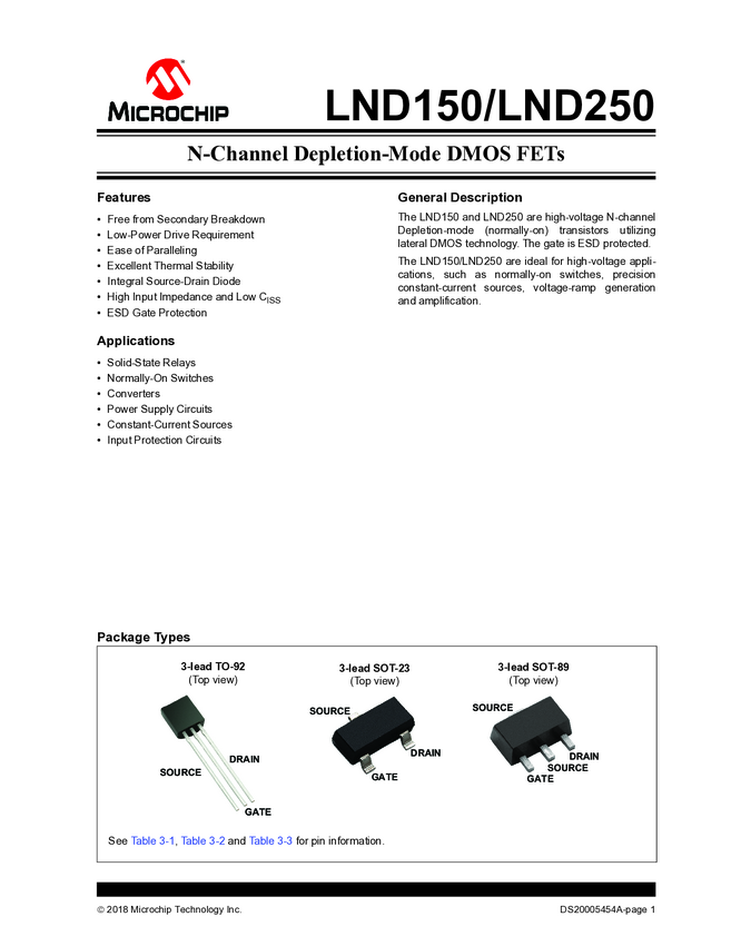 LND250 LND150/LND250 N-Channel Depletion-Mode DMOS FETs Data Sheet