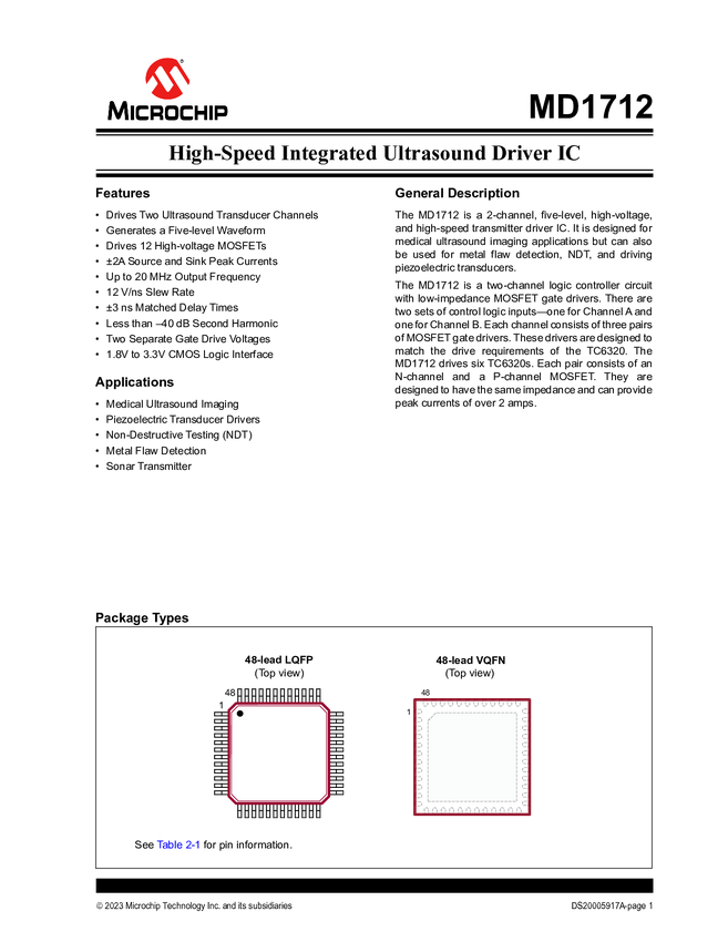 MD1712 High-Speed Integrated Ultrasound Driver IC Data Sheet