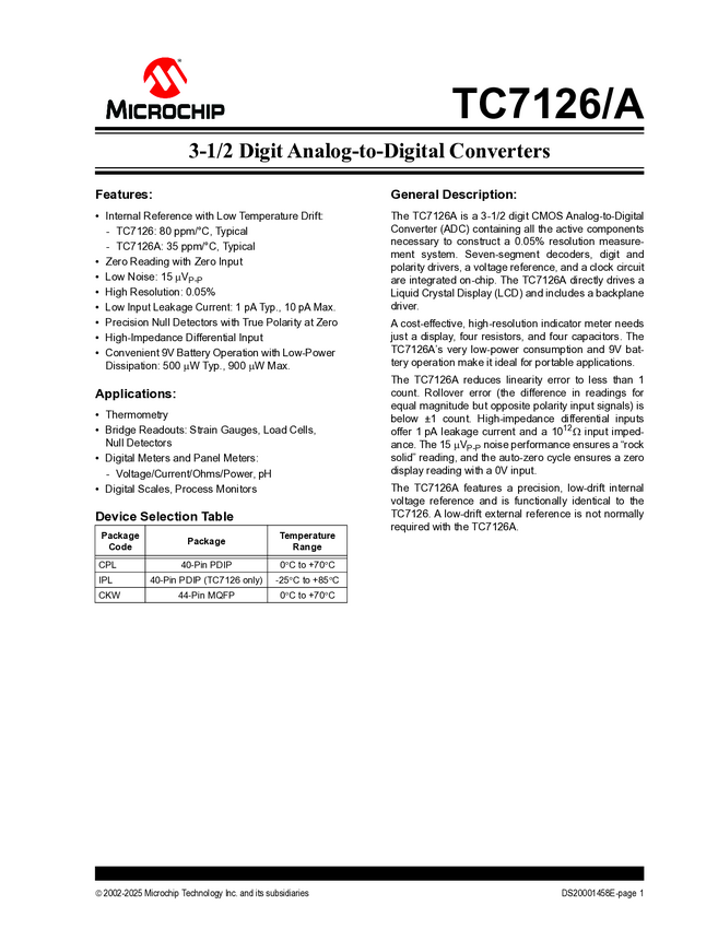 3-1/2 Digit Analog-to-Digital Converters (TC7126/A)