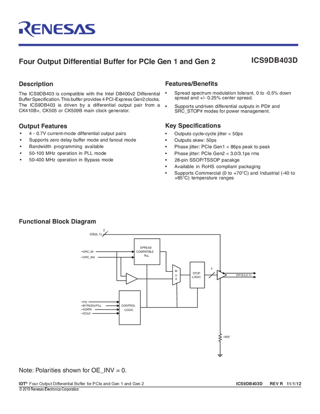 9DB403D 4-output Differential Buffer For PCIe Gen1-2