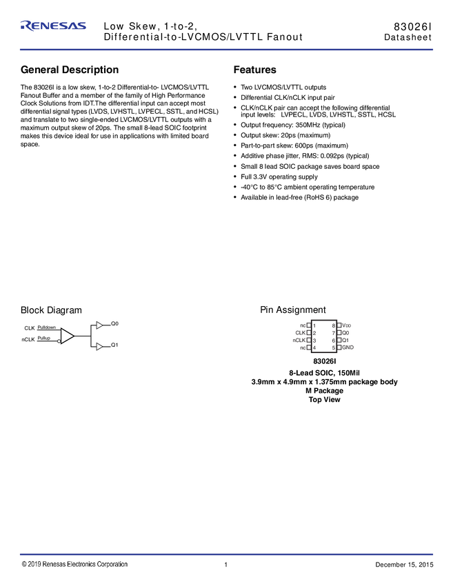 83026I Low Skew,1-to-2,Differential-to-LVCMOS/LVTTL Fanout Buffer