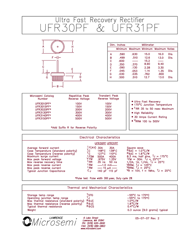 UFR3015PF-Rectifier, UFR3120PF-Rectifier, UFR3020PF-Rectifier, UFR3010PF-Rectifier, UFR3150PF-Rectifier, UFR3140PF-Rectifier