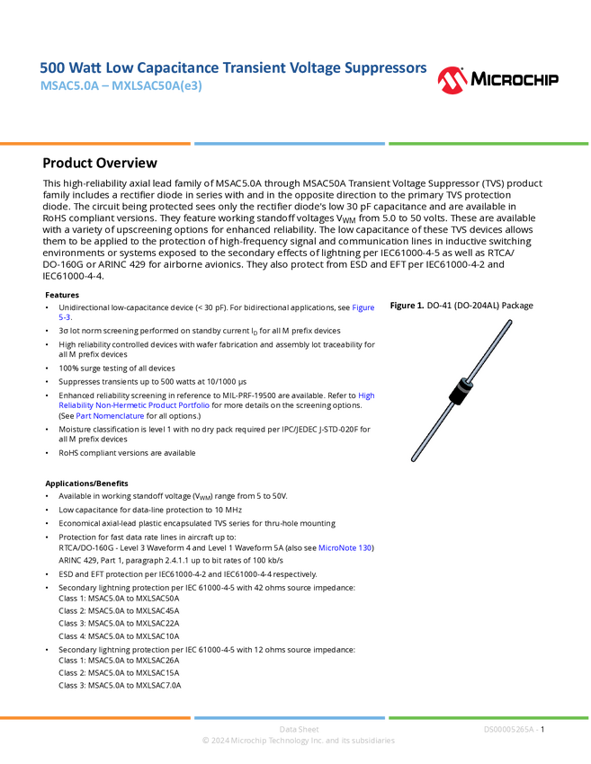 MSAC10 500 Watt Low Capacitance Transient Voltage Suppressors
