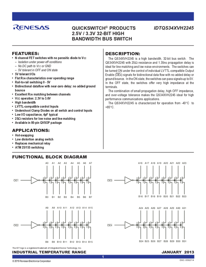 QS34XVH2245Q3G QuickSwitch Products 3.3V 32-Bit Bus Switch for Hot Swap Applications