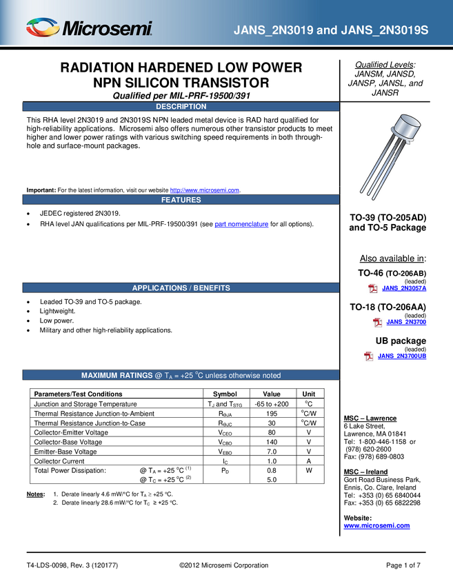 JANSF2N3019-Transistor 2N3019-2N3019S