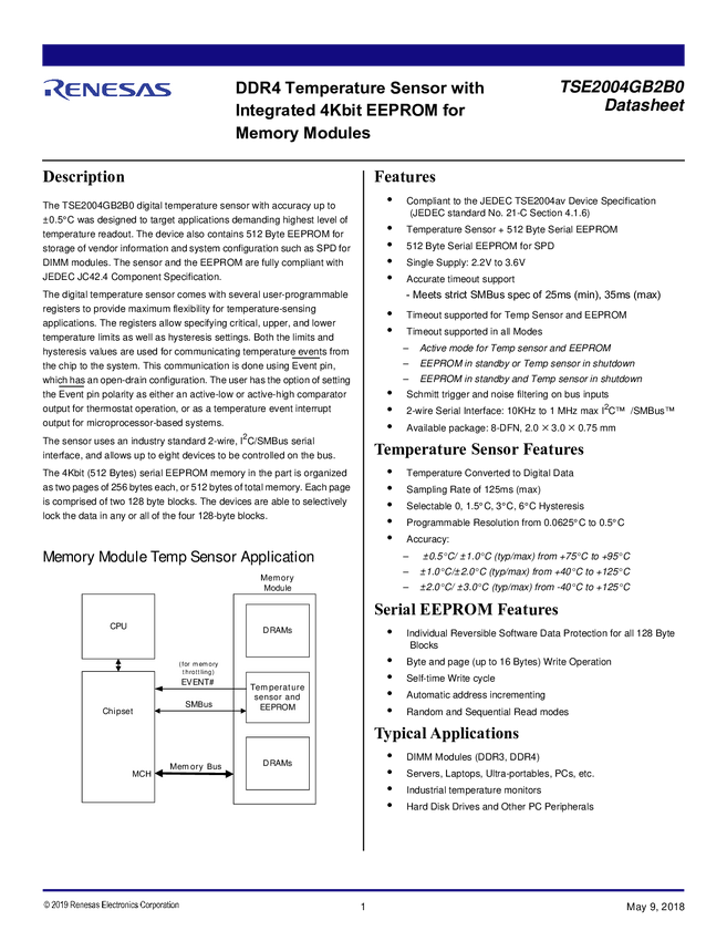 TSE2004GB2B0NCG8 DDR4 Temp Sensor with SPD