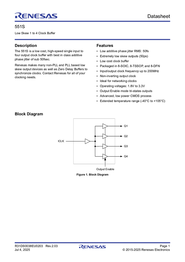 551SDCGI8 Low Skew 1 to 4 Clock Buffer
