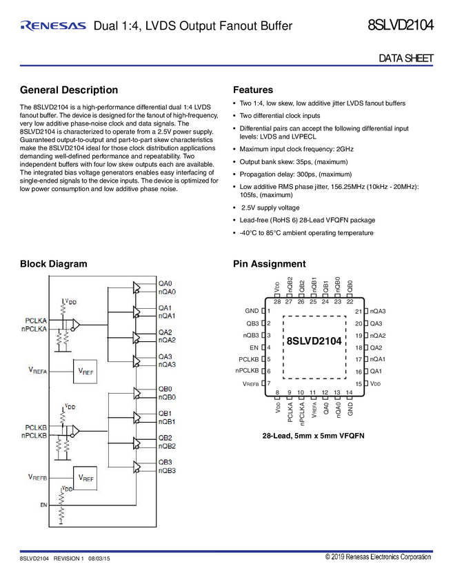 8SLVD2104NBGI Dual 1:4, LVDS Output Fanout Buffer