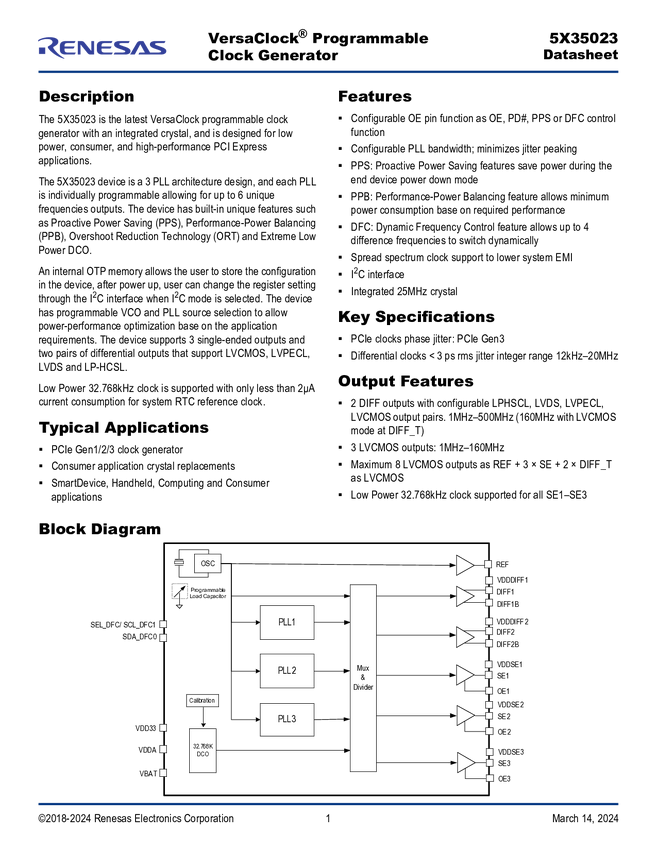 5X35023-000NXGI VersaClock 3S Programmable Clock Generator with Integrated Crystal