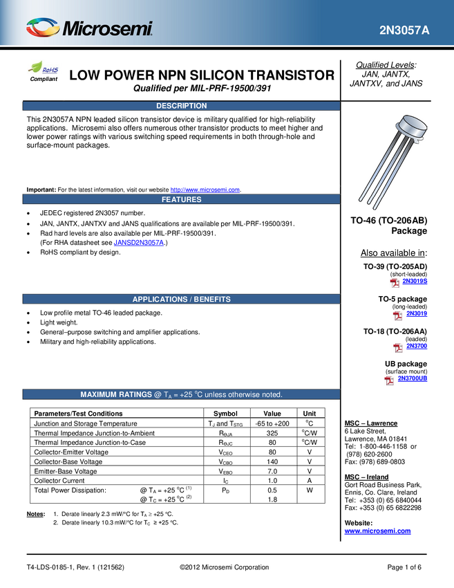 JAN2N3057A-Transistor, 2N3057-Transistor, JANTX2N3057A-Transistor, JANS2N3057A-Transistor, 2N3057A-Transistor