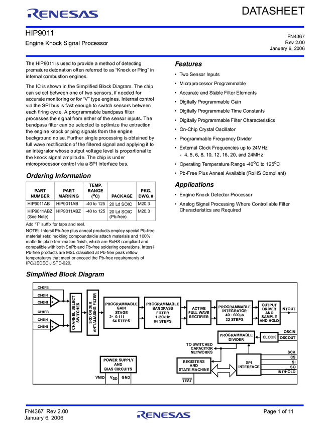 HIP9011ABZ Engine Knock Signal Processor