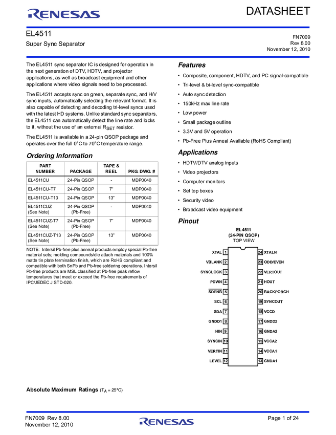 EL4511CUZ-T13, EL4511CUZ-T7, EL4511CUZ-T7A, EL4511