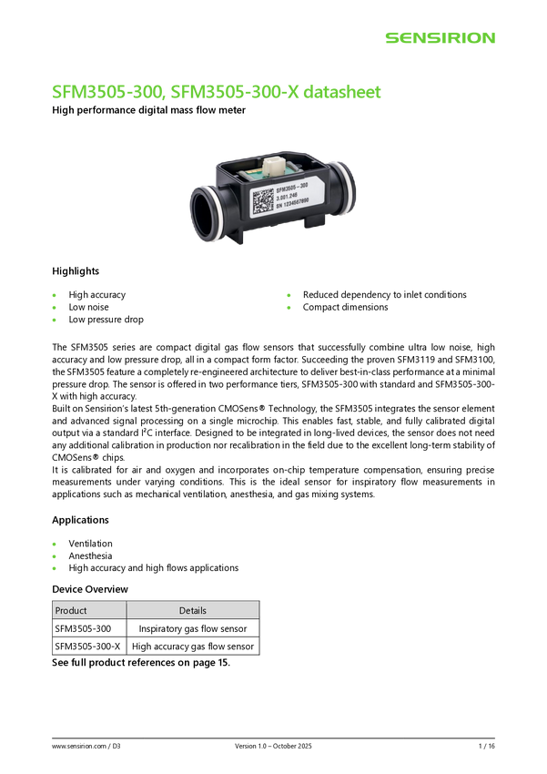 SFM3505 Next generation compact flow sensor family available in two performance lev...
