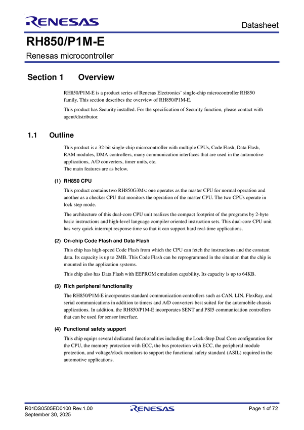 - R7F701376EAFP, R7F701377EAFP, R7F701378EAFP, R7F701379EAFP, R7F701380EAFP, R7F701381EAFP, R7F701382EAFP, R7F701383EAFP, R7F701384EAFP, R7F701385EAFP, R7F701386EAFP, RH850/P1M-E