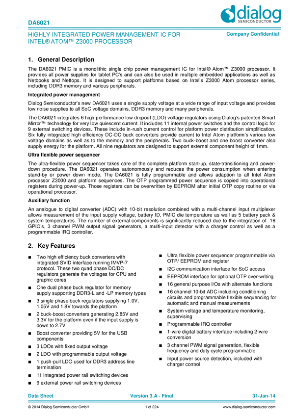 DA6021-09FI2 Highly Integrated Power Management IC for New Generation Intel Atom Process...