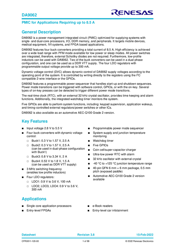 DA9062-00AM1, DA9062-00AMC, DA9062-A0AMC, DA9062-XXAM1, DA9062-XXAMC, DA9062