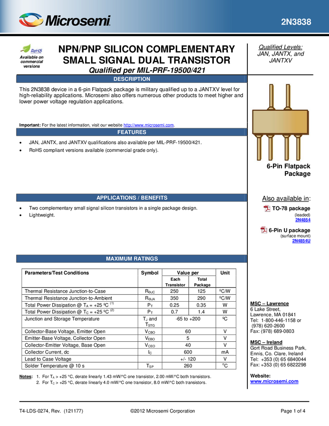 JAN2N3838-Transistor, 2N3838-Transistor, JANTXV2N3838-Transistor, JANTX2N3838-Transistor, 2N3838-TR-Transistor