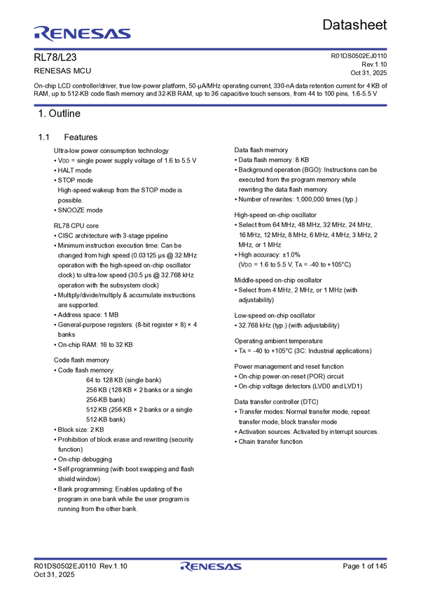 RL78/L23 32MHz Ultra-Low Power LCD Microcontroller with Capacitive Touch Function