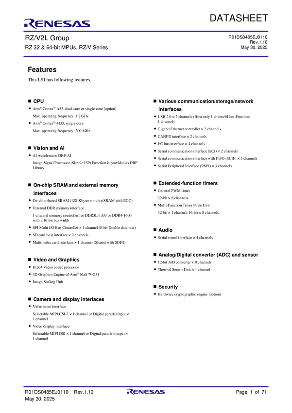 General-Purpose Microprocessor Equipped With Renesas' Original AI Accelerator "DRP-AI", 1.2GHz Dual-Core Arm Cortex-A55 CPU, 3D Graphics, and Video Codec Engine