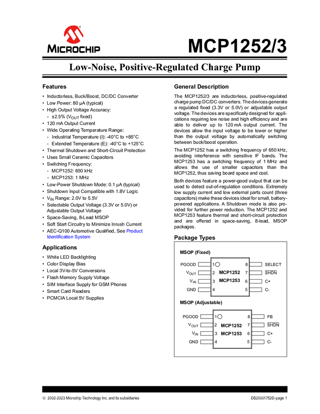MCP1252/3 Low-Noise, Positive-Regulated Charge Pump Data Sheet