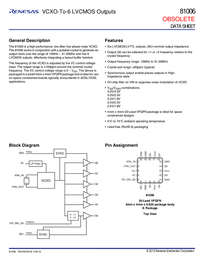 81006I VCXO-to-LVCMOS Outputs