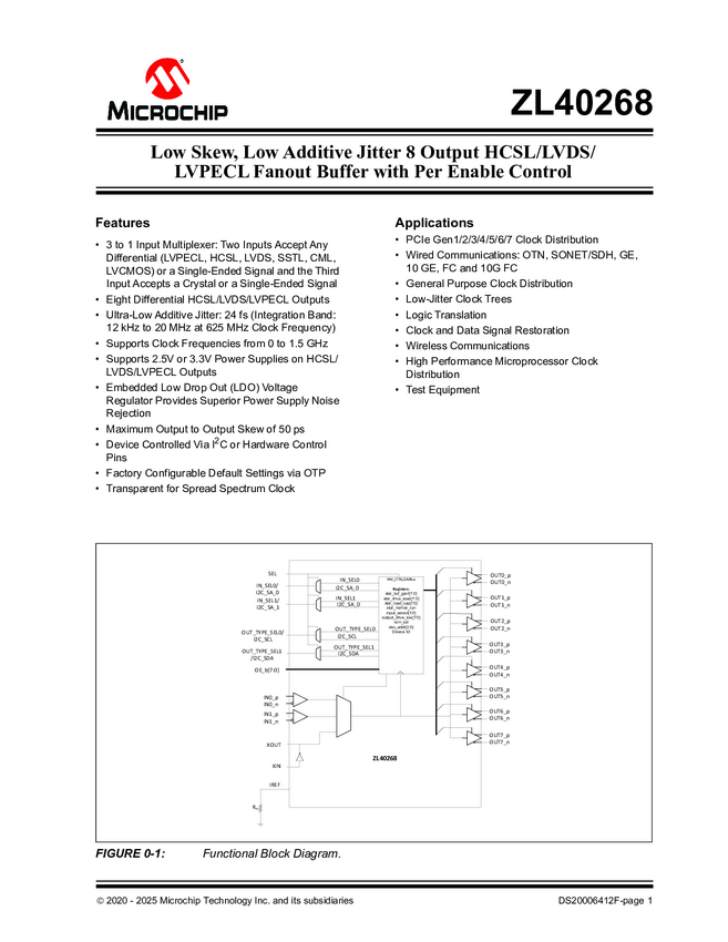 ZL40268 - Low Skew, Low Additive Jitter 8 Output HCSL/LVDS/LVPECL Fanout Buffer with Per Enable Control