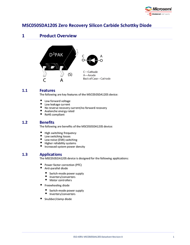 MSC050SDA120S SIC SBD 1200V 50A TO-268 Datasheet