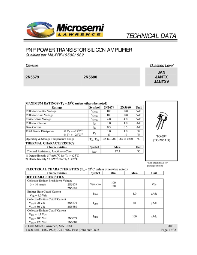 JAN2N5679-Transistor, JANTX2N5680-Transistor, JANTX2N5679-Transistor, JAN2N5680-Transistor, JANTXV2N5680-Transistor, JANTXV2N5679-Transistor, 2N5680L-Transistor, 2N5680-Transistor