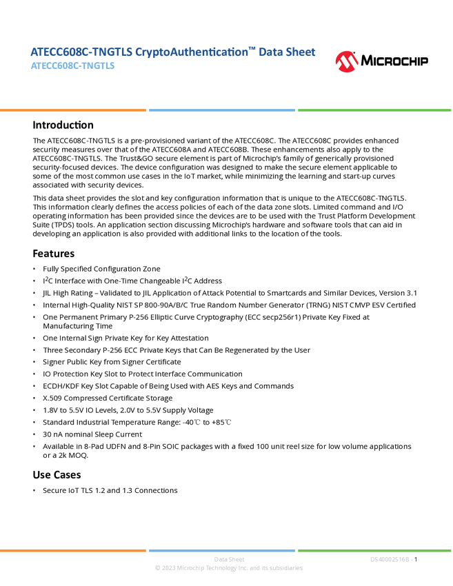 ATECC608C-TNGTLS CryptoAuthentication™ Data Sheet