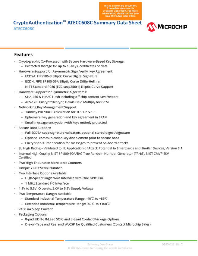 CryptoAuthentication ATECC608C Summary Data Sheet