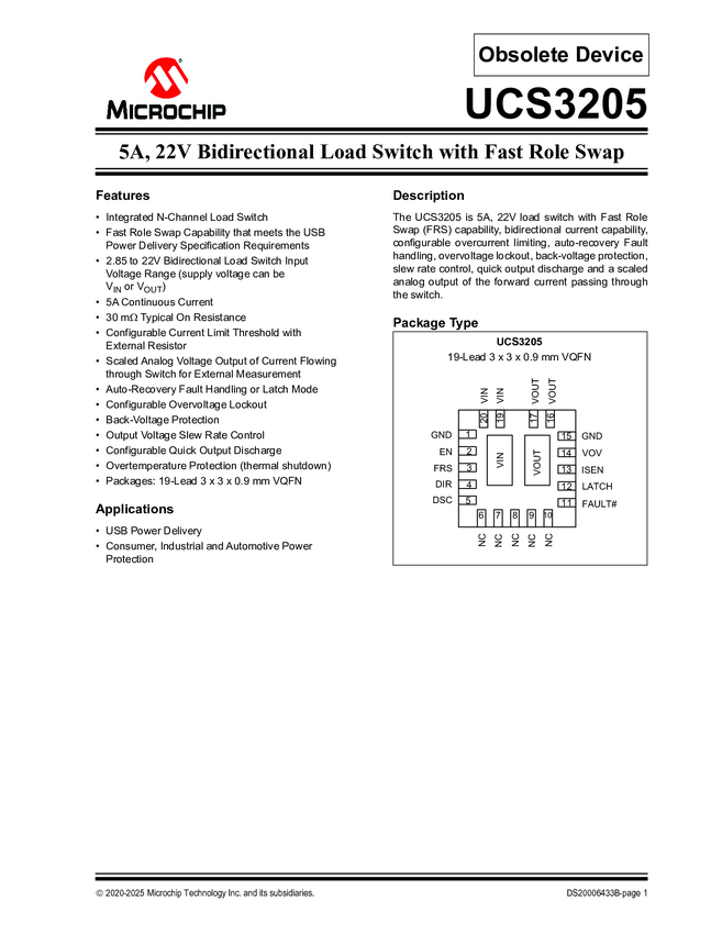 UCS3205 - 5A, 22V Bi-Directional Load Switch with Fast Role Swap