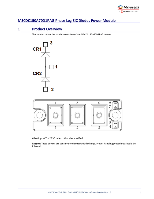MSCDC150A70D1PAG 700V Phase Leg SiC Diode Module Datasheet