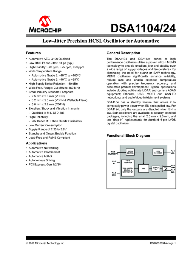 DSA1104 DSA1104/24 - Low-Jitter Precision HCSL Oscillator for Automotive
