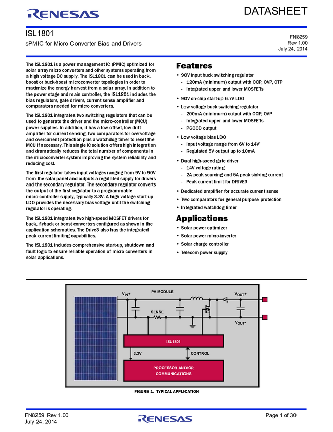 ISL1801IVZ sPMIC for Micro-Converter Bias and Drivers