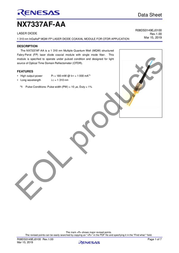 NX7337AF-AA-AZ 310 nm InGaAsP MQW-FP Laser Diode COAXIAL Module for OTDR Application