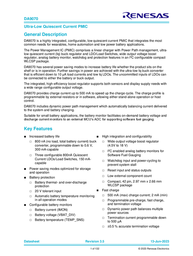 DA9070-08V32 Highly Integrated PMIC for Wearables and Home Automation