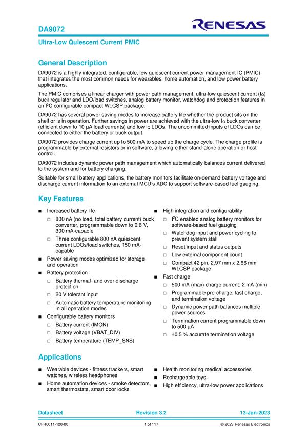 DA9072-80V32 Highly Integrated PMIC for Wearables and Home Automation