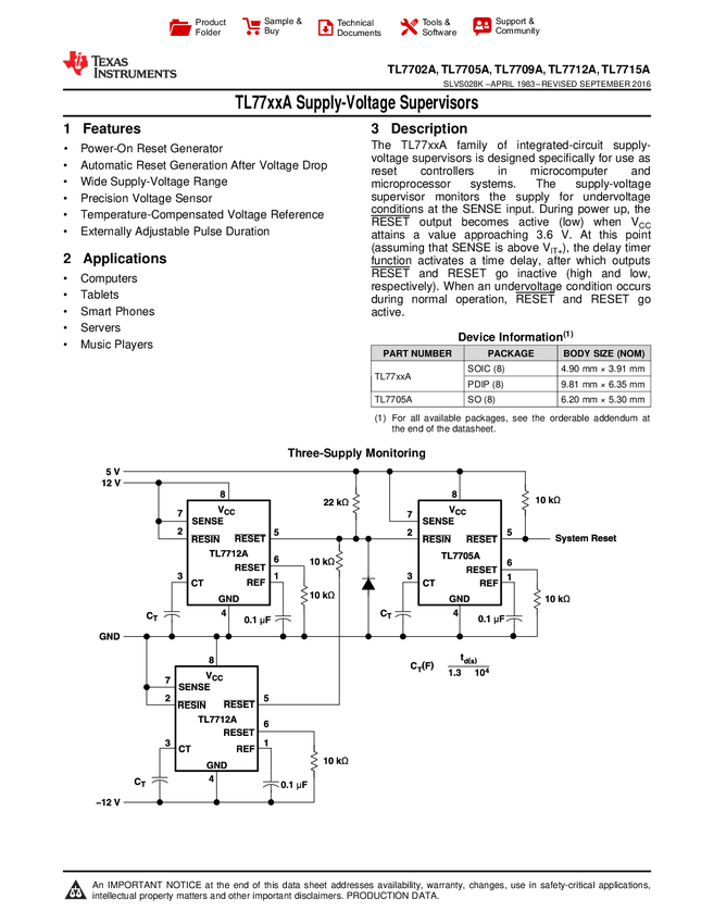 Układ scalony; TL7705; IC; układ nadzorujący; monitor zerowania zasilania (PoR); DIP8; THT; TL7705AIP; TEXAS INSTRUMENTS; RoHS