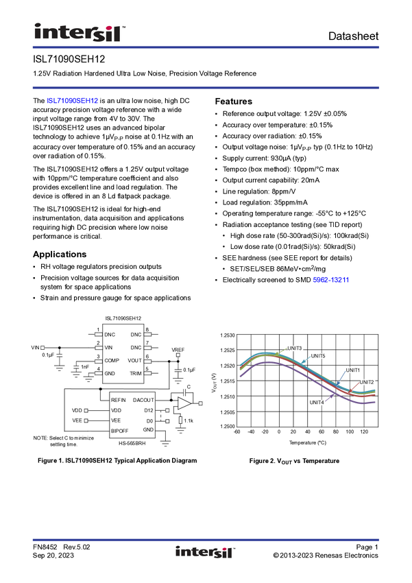 ISL71090SEH12 Radiation Hardened Ultra-Low Noise, Precision Voltage Reference