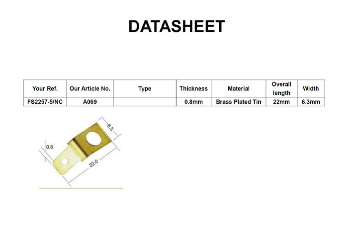 Konektor płaski; 6,3mm; 0,8mm; męski; M5; przykręcany; mosiądz; cynowany, niklowany; wsuwka / oczko; = 61-2257-31/0000; FS2257-5/NC; NINIGI; opakowanie/100szt