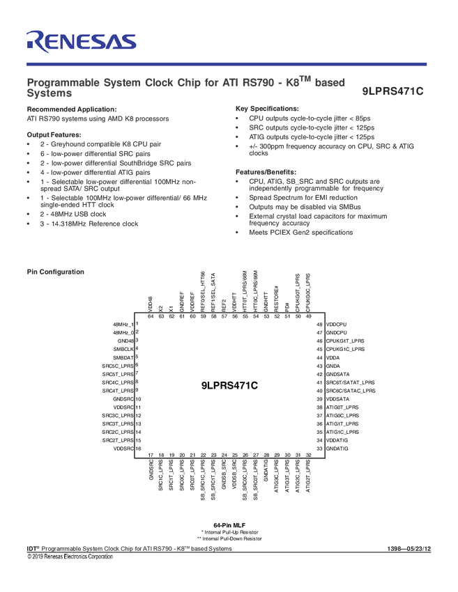 9LPRS471 Programmable System Clock Chip for ATI RS790 - K8 based Systems
