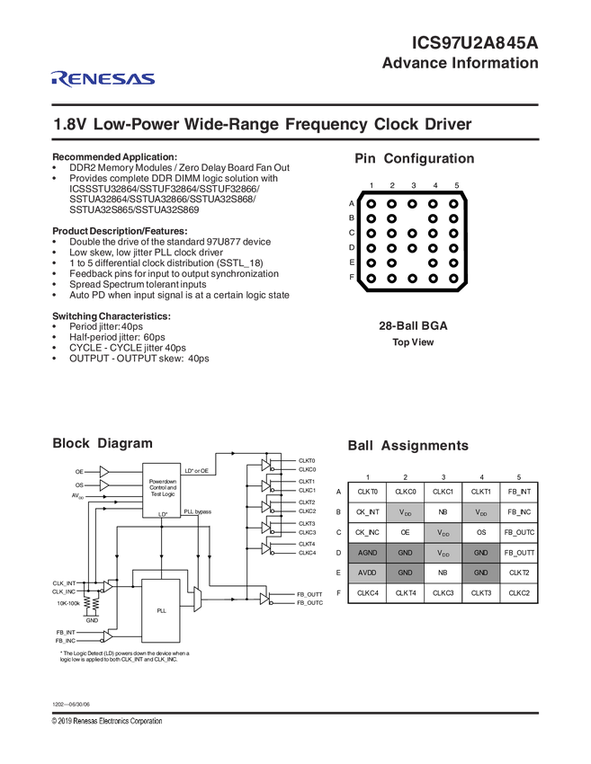97U2A845A 1.8V Low-Power Wide-Range Frequency Clock Driver