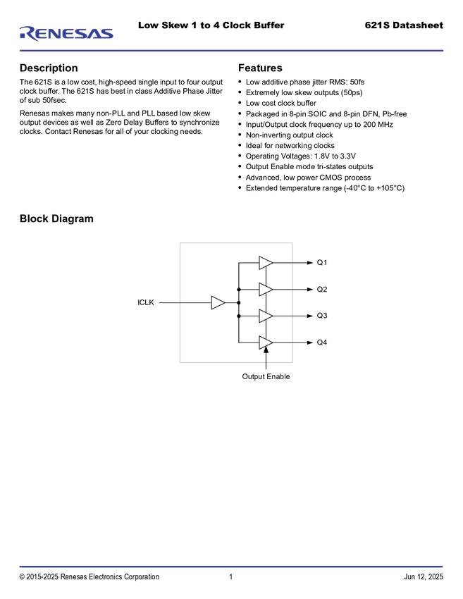 621SDCGI Low Skew 1 to 4 Clock Buffer